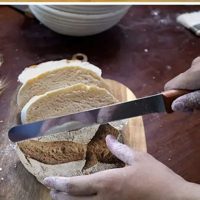 A palette knife is a life saver when it comes to baking and handling baked goods. It is extremely useful for moving delicate items like cake, pie or pastry without breaking them. It also helps in lifting up pastry without making any cracks in it or simply plate a dish in absolute style. Palette knives are also used for cake decorations, to spread frosting on a cake or sometimes for careful mixing. Bread knife are used for cutting bread and are one of many kitchen knives used by chefs. The slim series of bread knives have serrated blades, which enable you to cut soft bread without crushing it. The blade is made up of stainless steel and has a black handle It is extremely useful for moving delicate items like cake, pie or pastry without breaking them It also helps in lifting up pastry without making any cracks in it or simply plate a dish in absolute style Palette knives are also used for cake decorations, to spread frosting on a cake or sometimes for careful mixing.