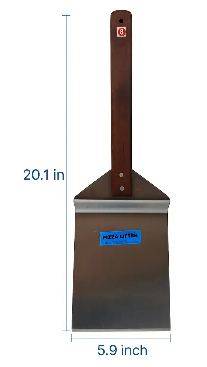 This 20.1-inch Pizza Lifter is built for professionals who need strength and surface space in every lift. With its extra-long wooden handle and broad 5.9-inch blade, it’s perfect for transferring large pizzas, cakes, or bread straight from oven to counter with no mess. Its durable design makes it ideal for commercial kitchens, bakeries, and serious home chefs alike. Height: 20.1 inchesWidth: 5.9 inchesLong handle for deep oven reachHeavy-duty stainless steel bladeRiveted wooden handle for firm gripDesigned for commercial kitchens and bakersMinimum order quantity: 3 piecesModel Number: BT262