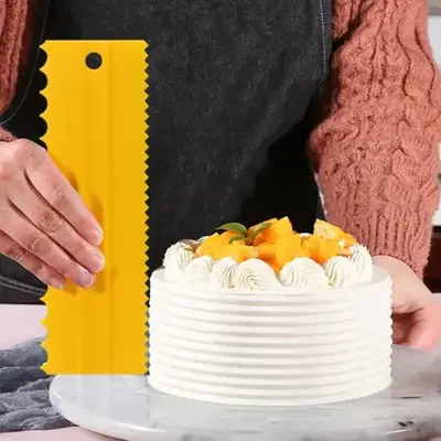 4-in-1 design: smooth, zigzag, comb, and wave edges Double-sided for varied effects Long size for taller cakes Durable plastic – easy to wash and reuse Perfect for buttercream, ganache, and whipped cream Pieces