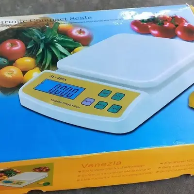Max weighing capacity: 10kgs Made from durable plastic, suitable for homes, shops & industries. Beautiful design will compliment your modern kitchen. Wide LCD screen display, easy to read, automatically locks the reading when data is stable. 4 different weighing units Can see weight in grams (g) / kilogram (kg) / pounds (lb) / ounces (oz). Equipped with a high-precision strain gauge sensor system. It ensures accurate weighing even in high-humidity areas as it is splash-proof. Multiple Features: There are multiple features on the scale, such as an ON/OFF mode, a tare function, a unit exchange function, and an overload indicator. Widescreen display, automatic data locking, low power consumption, low battery indicator, high precision sensor when the scale is overloaded. To ensure accurate measurements, place the kitchen weighing scale on a flat surface.