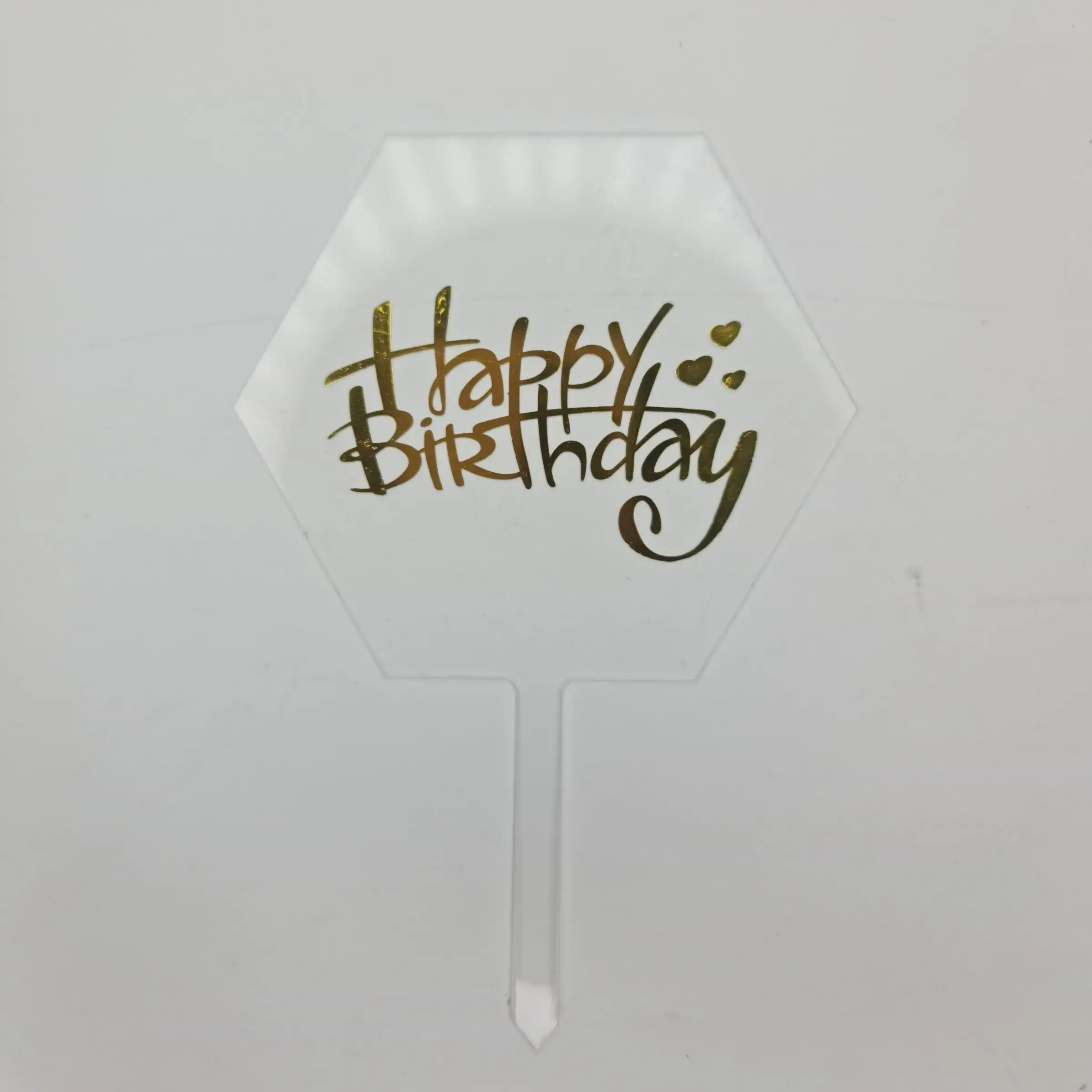 Transparent Hexagon Acrylic Happy Birthday Cake Topper 10-Piece Pack Packets TPR117-2